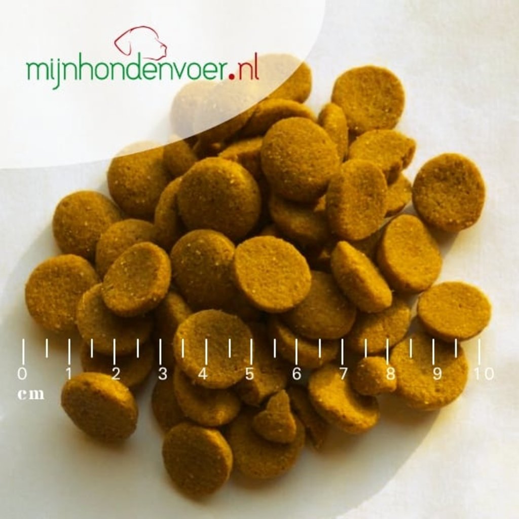 De grotere hoeveelheden eiwitten, oliën en omega-3-vetzuren bieden superieure voeding ter ondersteuning van een uitstekende gezondheid en vitaliteit en een optimaal uiterlijk. De grootte en vorm van de brokken is afgestemd op honden van een groot ras.